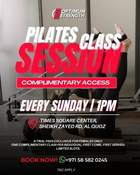Wellness continues at Optimum Strength, a women-focused fitness space offering complimentary Pilates classes every Sunday at 1 PM (limited slots, females only). Guests can also book Reformer Pilates sessions, including personalised one-on-one training or small group classes led by certified instructors.